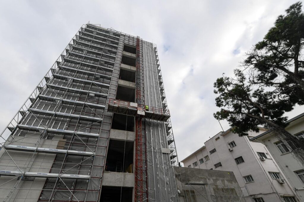 “İnşaatın zorlu etabı tamamlandı, daha hızlı ilerleyecek” İzmir Büyükşehir Belediyesi Fen İşleri Dairesi Başkanlığı Yapı İşleri Şube Müdürü Ece Bahar, toplam 549 milyon liralık yatırımla hayata geçirilen proje kapsamında inşaatın Temmuz 2024’te başladığını ve yüzde 45 seviyesine ulaştığını belirtti. Kaba inşaatın tamamlandığını, iç mekânda ince işçilik ile mekanik ve elektrik imalatlarının sürdüğünü aktaran Bahar, dış cephede granit seramik uygulamalarına başlandığını ve mevcut bina ile yeni bina arasında yapılacak köprünün temelinin atıldığını söyledi. İnşaatın en zorlu aşamasının geride kaldığını vurgulayan Bahar, çalışmaların planlanan takvim doğrultusunda ilerlediğini ve projeyi temmuz ayında tamamlayarak İzmirlilerin hizmetine sunmayı hedeflediklerini ifade etti. “İzmir’e yakışır estetik ve modern bir bina kazandırmayı hedefliyoruz” Bahar, deprem sürecinin ardından daha dayanıklı bir temel sistemi geliştirildiğini ve inşaatın bu doğrultuda sürdürüldüğünü belirtti. İzmir’e uzun yıllar hizmet edecek nitelikli bir sağlık yapısı inşa ettiklerini vurgulayan Bahar, proje tamamlandığında hem dış cephe tasarımı hem de iç mekân düzenlemeleriyle kente estetik ve modern bir hastane kazandırmayı hedeflediklerini söyledi.